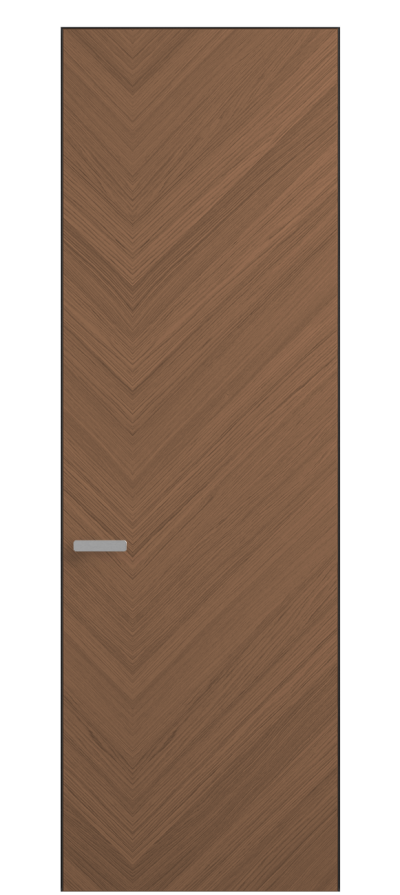 Полотно Rift в скрытом алюминиевом коробе становится полноценным элементом декора. В коллекции представлено 9 моделей дверей в высоте до 3 метров. Рисунок раскладки шпона варьируется от простого до сложного. «Рубашка» для каждого полотна подбирается вручную по цвету, текстуре и фактуре.