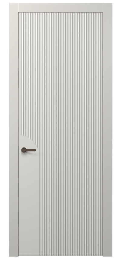 Dune — коллекция дверей украшена частой прямой фрезеровкой, которая напоминает волны дюн в пустыне. Созданная на поверхности полотна текстура привлекает взгляд и добавляет глубину пространству. Двери Dune — это сочетание современного дизайна и вдохновения живописными природными ландшафтами.